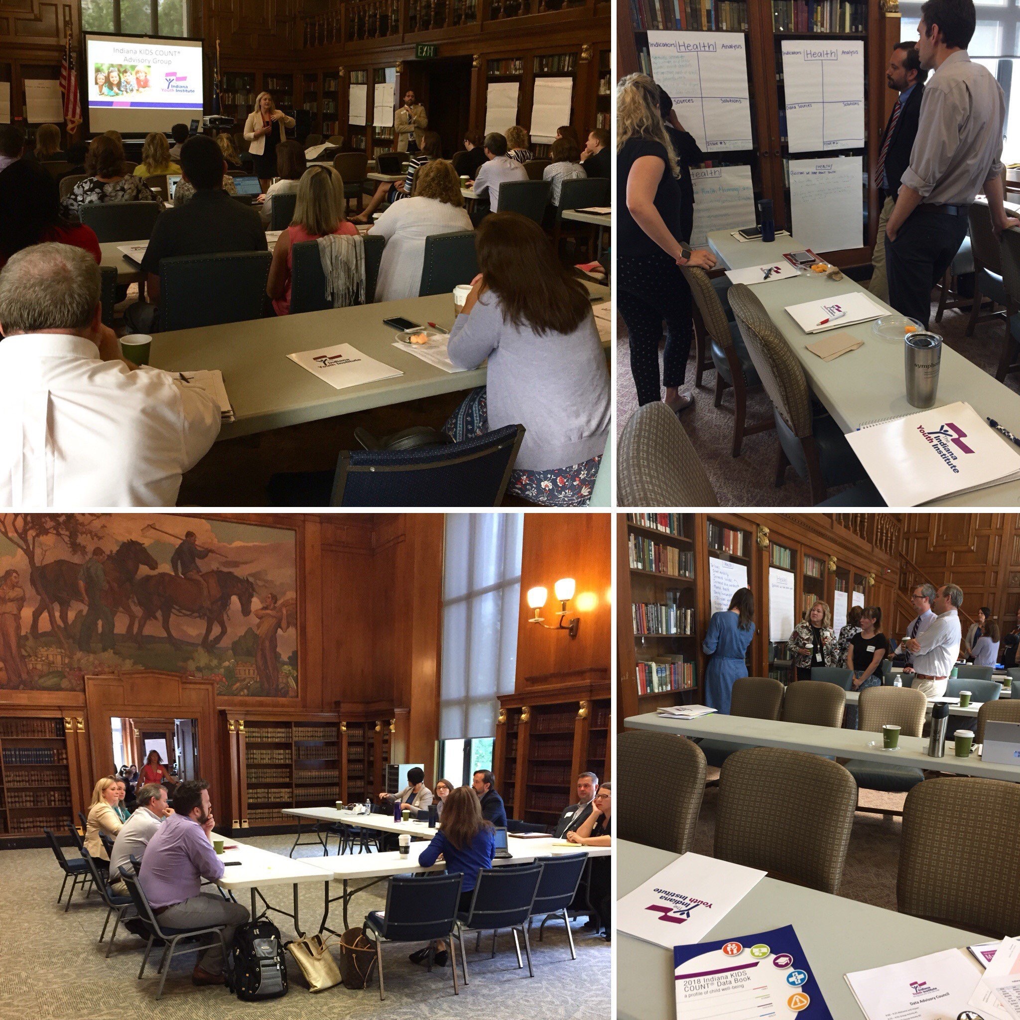 The Indiana KIDS COUNT® Advisory Group met to discuss key issues facing Hoosier youth, policy and data collection changes related to child well-being, and enhancements. The stakeholders present at this meeting included representatives from the Indiana Department of Education, Indiana State Department of Health, Indiana Department of Child Services, Indiana Department of Workforce Development, and other youth serving organizations. Feedback from this group was essential to determine top issues and receive feedback on design enhancements such as new visualization techniques and the overall design of the Data Book.
